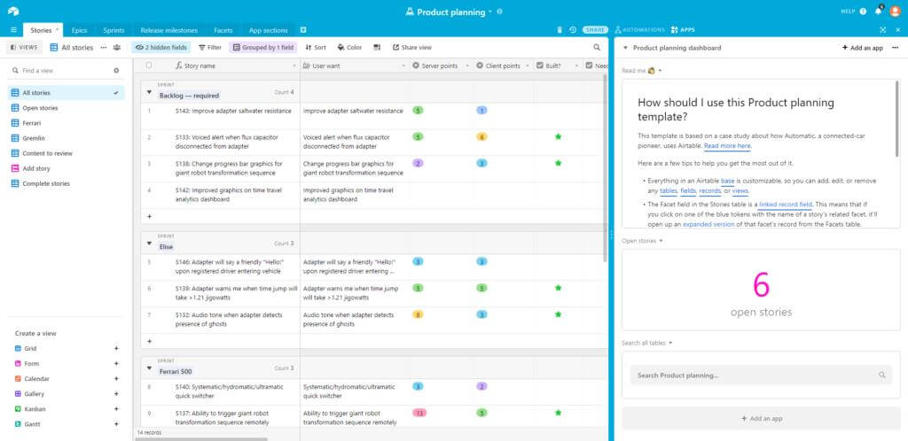 We touched on it briefly above and consider this feature a real game changer: Airtable is not only friendly to use and allows everyone to create a corporate dashboard, store, organize and merge information about everything in the company. This is because Airtable already offers automation itself, which can be further enhanced by Zapier or Make.